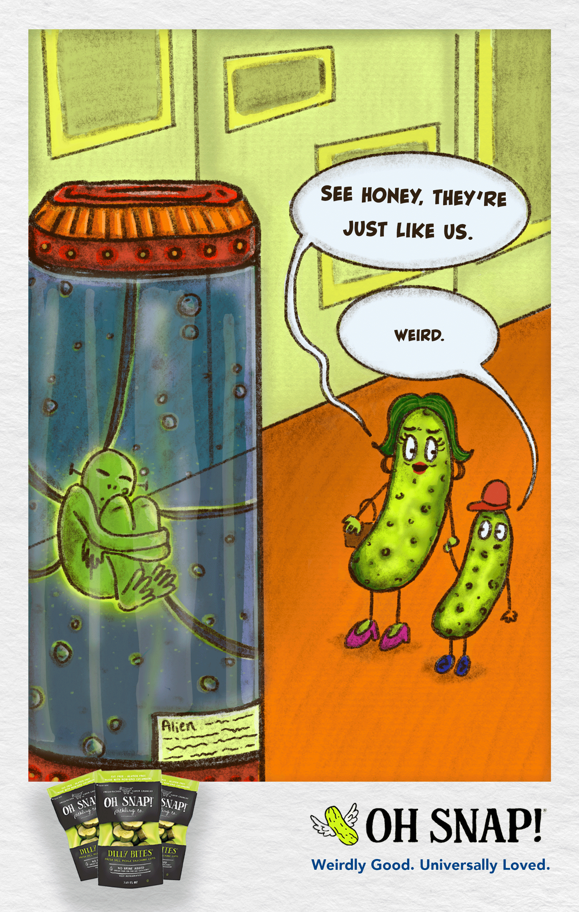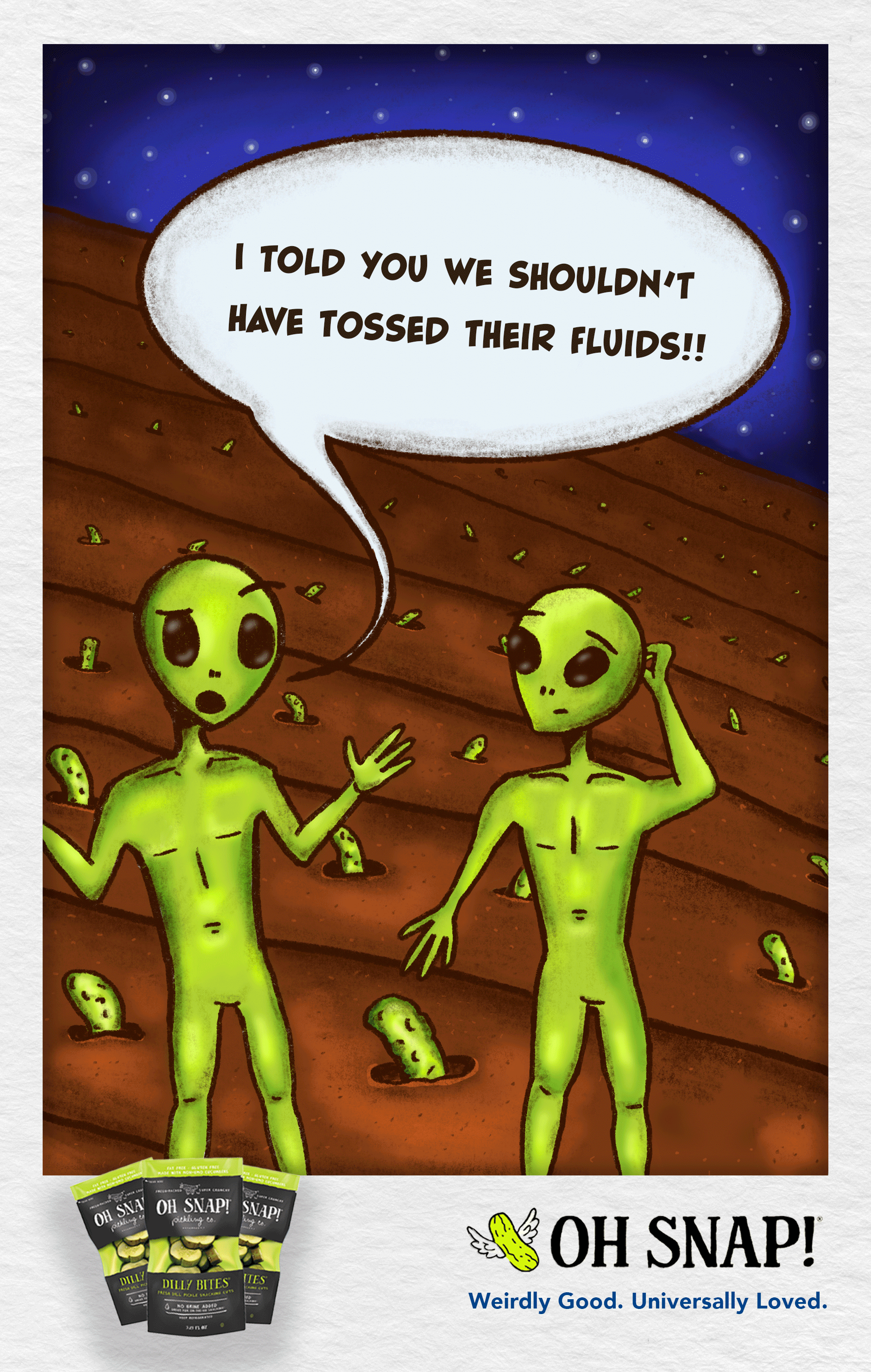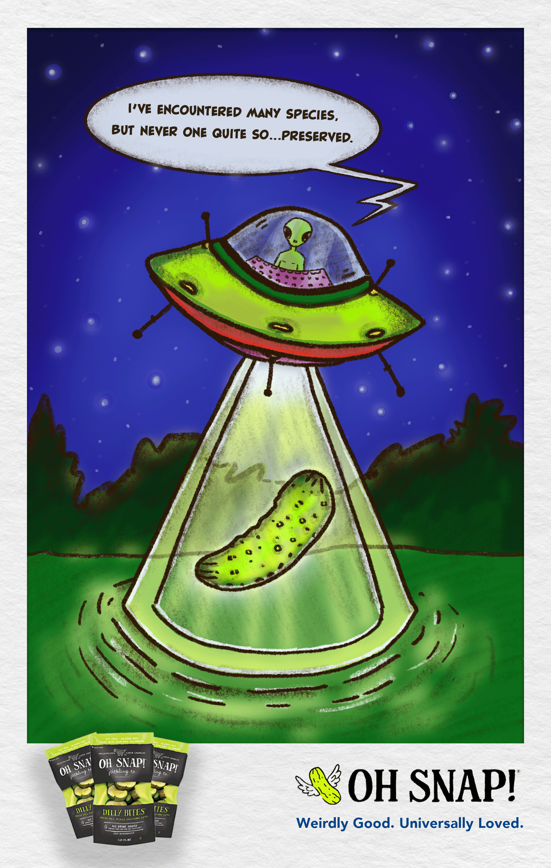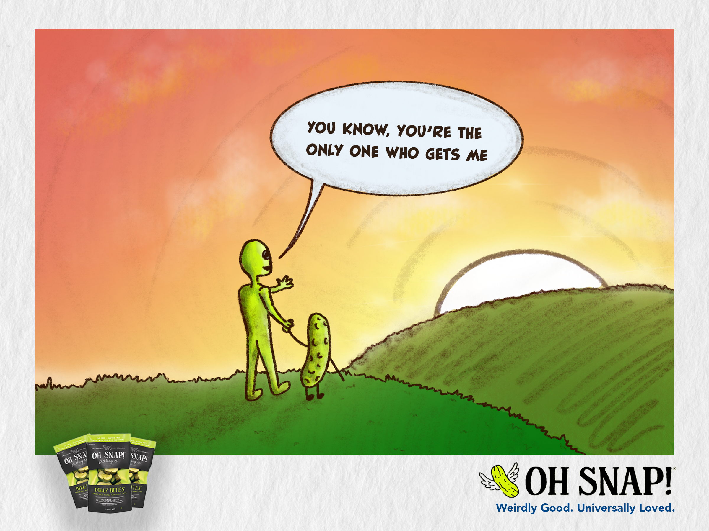 Being unusually green, misunderstood and deeply polarizing, OH SNAP! Pickles have teamed up with their closest galactic friends, aliens - because they know what it means to be the oddball of the galaxy.